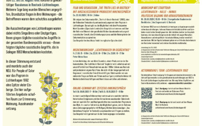 In dieser Stimmung entstand und mordete auch der NSU. Für People of Color war das Pogrom in Lichtenhagen 1992 eine Spitze vieler Eisberge. Die hier aufgeführten Angebote schaffen Raum zur Erinnerung, Mahnung, Auseinandersetzung.