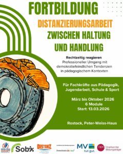 Rechtzeitig reagieren – Professioneller Umgang mit demokratiefeindlichen Tendenzen in pädagogischen Kontexten Die Fortbildung wir im Rahmen einer Kooperationvon Distanz e.V. und Soziale Bildung e.V. in…