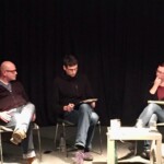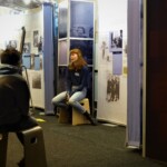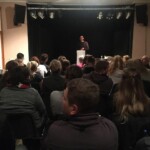 Letzter Programmpunkt während der Ausstellungeröffnung waren Grußworte von Patrick Siegele (Direktor des Anne-Frank-Zentrums) und ein Gespräch zwischen ihm und einigen der Peer Guides über ihre bisherigen Erfahrungen und ihre Motivation.