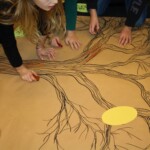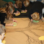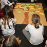 Neben interaktiven und kreativen Methoden im Rahmen der Ausstellungsbegleitung wurde am Ende gemeinsam das Bilderbuch „Annes Baum“ (Irène Cohen-Janca) gelesen. Im Anschluss erarbeiteten die Schulklassen eine Gedankenbaum, den sie für die Nachbereitung der Ausstellung mit in ihren Klassenraum genommen haben.